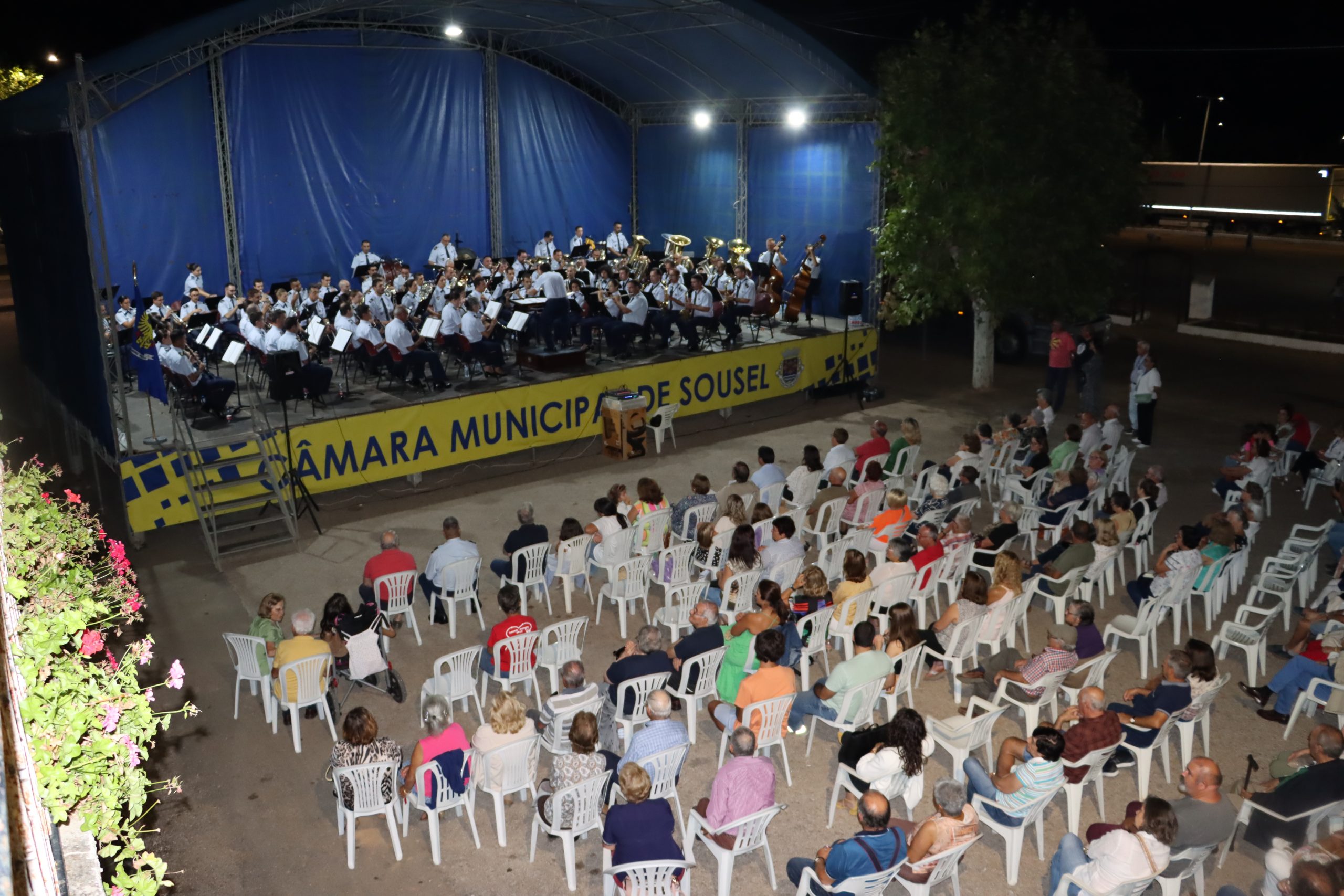 Com um palco composto por mais de 80 músicos de alta qualidade, dirigidos superiormente pelo maestro Major António Rosado, natural de Évora, também o recinto do espetáculo se encheu de público para assistir a este concerto dinâmico e encantador, onde foi possível ouvir interpretações de uma grande variedade musical, desde clássicos a músicas modernas conhecidas de todo o público, que participou ativamente em muitas das músicas, batendo palmas a pedido do maestro.