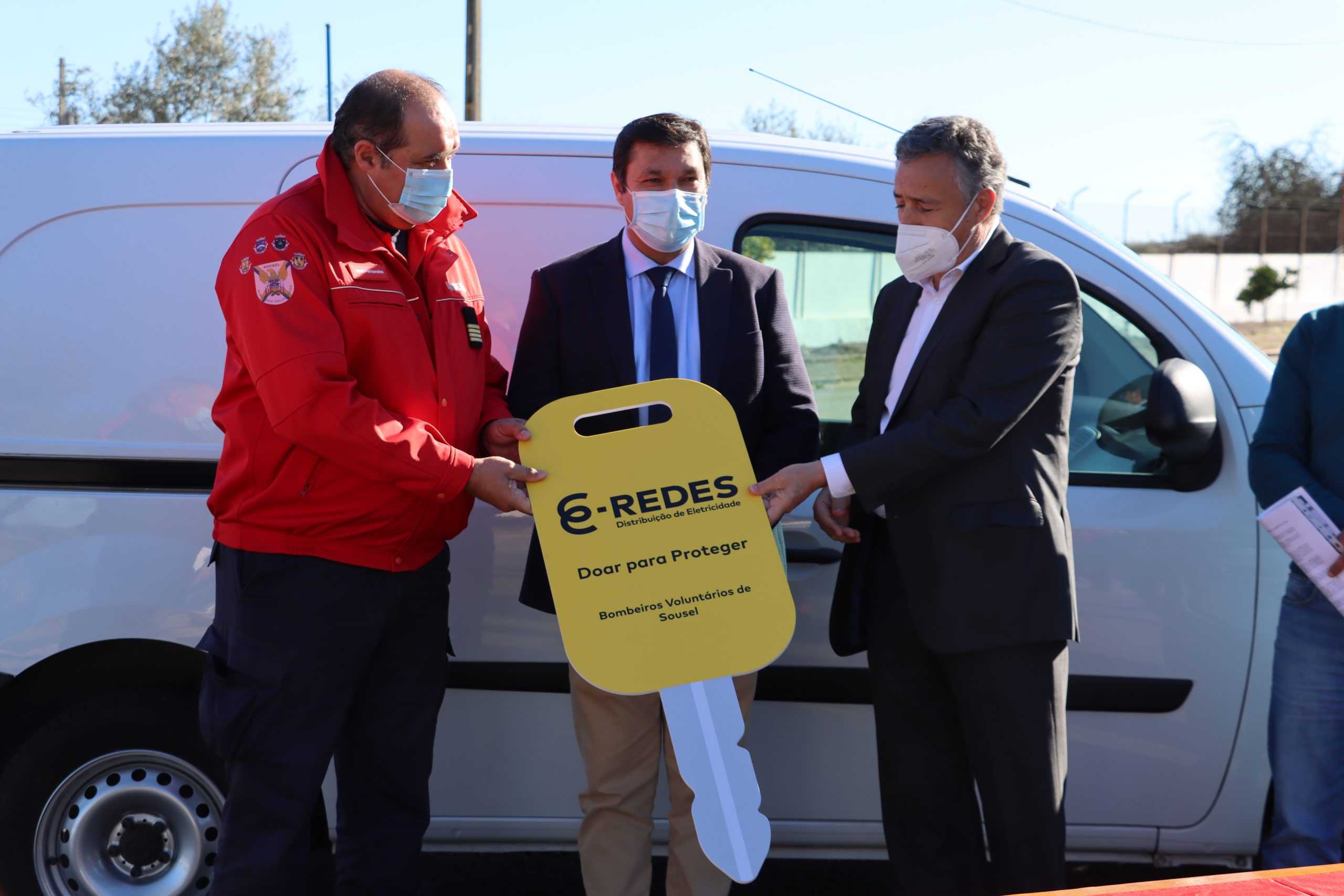 O diretor de Autarquias Sul da E-REDES, António Leal Sanches, procedeu à entrega simbólica da chave, afirmando esperar que a carrinha ajude a corporação souselense no desempenho da sua tão nobre missão de apoio e socorro às populações.