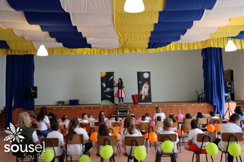 Em Sousel, os alunos da Creche e Jardim de Infância da Santa Casa da Misericórdia, puderam assistir à peça “A Que Sabe a Lua?”, enquanto os alunos da Creche da Comissão de Melhoramentos do Concelho de Sousel, do Jardim de Infância e do 1.º Ciclo da freguesia de Casa Branca assistiram à peça “O Mistério dos Super-Heróis”.