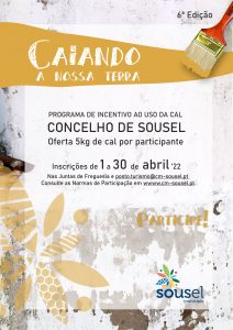 A iniciativa visa estimular o uso da cal por parte da população residente no concelho, nas pinturas das fachadas e/ou nos muros confinados com a via pública, de forma a embelezar as suas habitações, através da oferta de 5 Kg de cal.